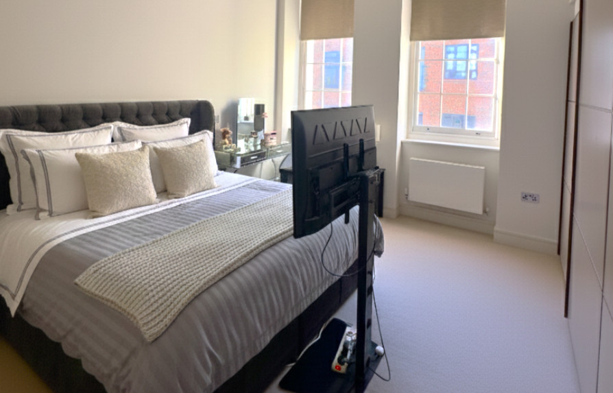 Once part of Brentford’s magistrates court, this beautifully restored building now feels more like a quiet urban sanctuary than a conversion. The moment you step inside the flat, the tall windows and high ceilings set the tone – bright, calm, and surprisingly grand for a one-bedroom home.